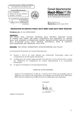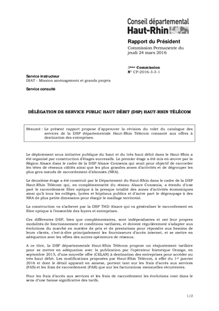 DÉLÉGATION DE SERVICE PUBLIC HAUT DÉBIT (DSP) HAUT-RHIN TÉLÉCOM