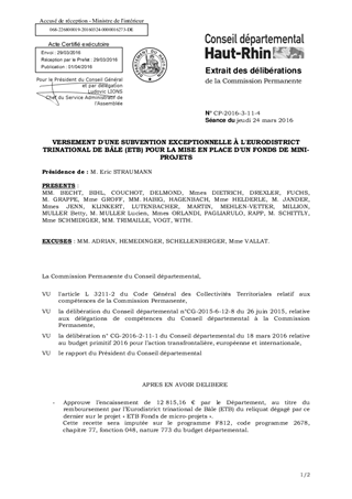 VERSEMENT D'UNE SUBVENTION EXCEPTIONNELLE À L'EURODISTRICT TRINATIONAL DE BÂLE (ETB) POUR LA MISE EN PLACE D'UN FONDS DE MINI-PROJETS