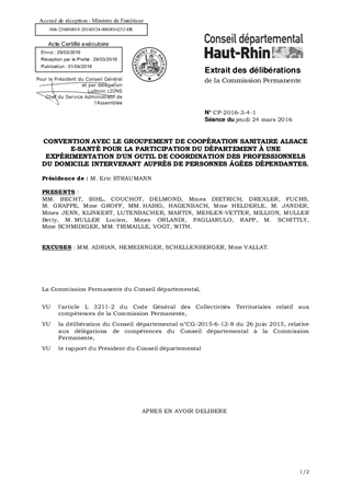 CONVENTION AVEC LE GROUPEMENT DE COOPÉRATION SANITAIRE ALSACE E-SANTÉ POUR LA PARTICIPATION DU DÉPARTEMENT À UNE EXPÉRIMENTATION D'UN OUTIL DE COORDINATION DES PROFESSIONNELS DU DOMICILE INTERVENANT AUPRÈS DE PERSONNES ÂGÉES DÉPENDANTES.