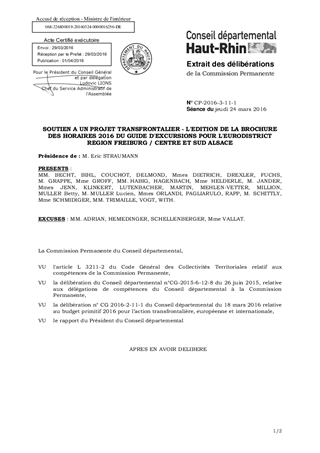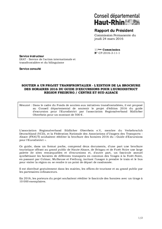 SOUTIEN A UN PROJET TRANSFRONTALIER - L'EDITION DE LA BROCHURE DES HORAIRES 2016 DU GUIDE D'EXCURSIONS POUR L'EURODISTRICT REGION FREIBURG / CENTRE ET SUD ALSACE
