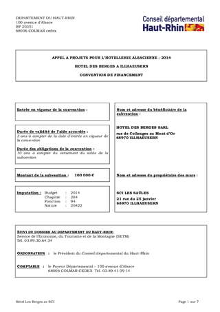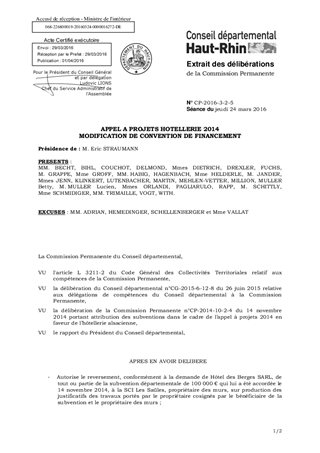 APPEL A PROJETS HOTELLERIE 2014MODIFICATION DE CONVENTION DE FINANCEMENT