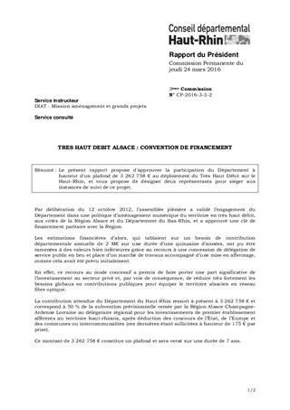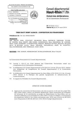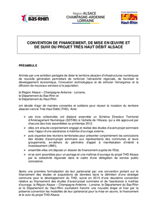 TRES HAUT DEBIT ALSACE : CONVENTION DE FINANCEMENT