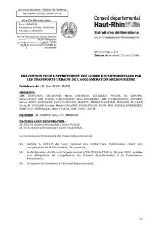 CONVENTION POUR L'AFFRETEMENT DES LIGNES DEPARTEMENTALES PAR LES TRANSPORTS URBAINS DE L'AGGLOMERATION MULHOUSIENNE