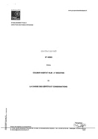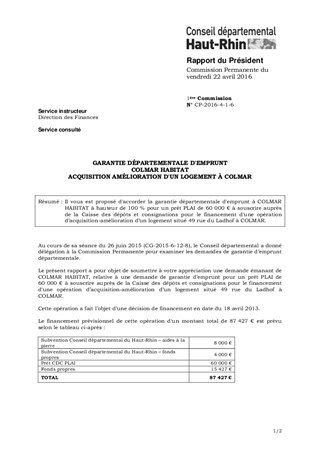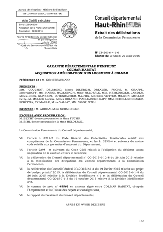 GARANTIE DÉPARTEMENTALE D'EMPRUNTCOLMAR HABITATACQUISITION AMÉLIORATION D'UN LOGEMENT À COLMAR