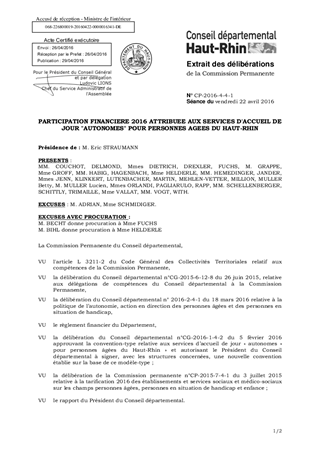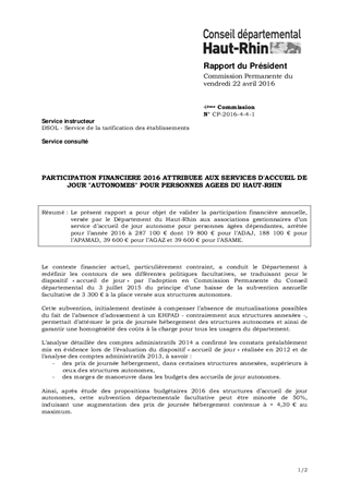 PARTICIPATION FINANCIERE 2016 ATTRIBUEE AUX SERVICES D'ACCUEIL DE JOUR "AUTONOMES" POUR PERSONNES AGEES DU HAUT-RHIN
