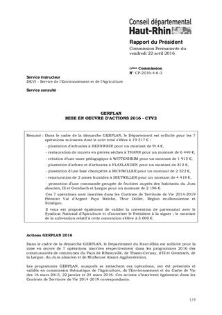 GERPLANMISE EN OEUVRE D'ACTIONS 2016 - CTV2