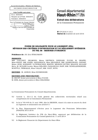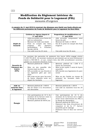 FONDS DE SOLIDARITE POUR LE LOGEMENT (FSL)RÉVISION DES CRITÈRES D'INTERVENTION ET DU RÈGLEMENT INTÉRIEUR DU FSL 68 - MESURES D'URGENCE
