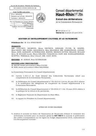 Au titre de sa politique culturelle, le Conseil départemental a adopté différents dispositifs permettant de soutenir diverses composantes du secteur culturel, dont l’animation du patrimoine et les musées. A ce titre, il est proposé, dans le présent rapport, d’attribuer et d'autoriser en faveur de l’Association de l’Ecomusée d’Alsace, une subvention d’un montant total de 407 968 € au titre du fonctionnement et de 250 000 € au titre de l’investissement, ainsi que d'approuver et de m'autoriser à signer l’avenant correspondant.