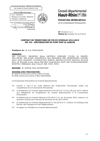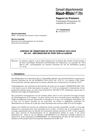 CONTRAT DE TERRITOIRE DE VIE DU SUNDGAU 2014-2019 RD 103 - SÉCURISATION DU PONT SUR LA LARGUE