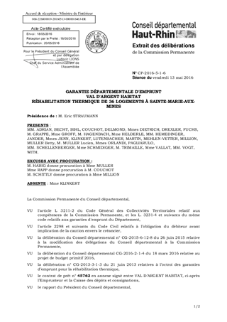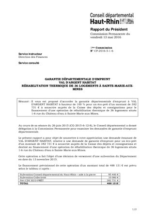 GARANTIE DÉPARTEMENTALE D'EMPRUNTVAL D'ARGENT HABITATRÉHABILITATION THERMIQUE DE 36 LOGEMENTS À SAINTE-MARIE-AUX-MINES