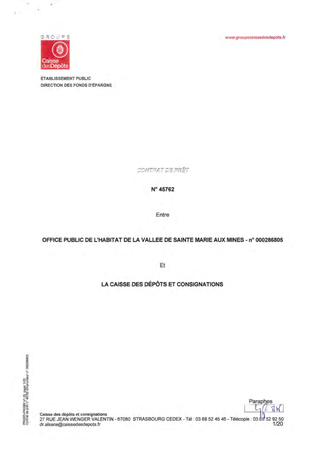 Il vous est proposé d'accorder la garantie départementale d'emprunt à VAL D’ARGENT HABITAT à hauteur de 100 % pour un éco-prêt d’un montant de 382 731 € à souscrire auprès de la Caisse des dépôts et consignations pour le financement d'une opération de réhabilitation thermique de 36 logements situés 1-6 rue du Château d’eau à Sainte-Marie-aux-Mines.
