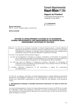 SOUTIEN AU DEVELOPPEMENT CULTUREL ET AU PATRIMOINESCHEMA DEPARTEMENTAL DES ENSEIGNEMENTS ARTISTIQUES (SDEA)ENSEIGNEMENT ARTISTIQUE ET PRATIQUE