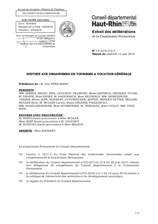 Dans le cadre du soutien départemental à certaines associations à vocation touristique, il est proposé d'attribuer, au titre de leur fonctionnement 2016, une subvention de 15 000 € à l'association des Gîtes Ruraux de France et Tourisme Vert du Haut-Rhin et une subvention de 15 000 € à l'association Clévacances Haut-Rhin.