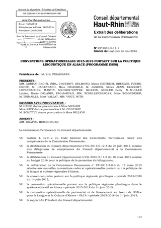 CONVENTIONS OPERATIONNELLES 2015-2018 PORTANT SUR LA POLITIQUE LINGUISTIQUE EN ALSACE (PROGRAMME E858)