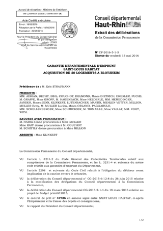 GARANTIE DEPARTEMENTALE D'EMPRUNTSAINT-LOUIS HABITATACQUISITION DE 20 LOGEMENTS A BLOTZHEIM