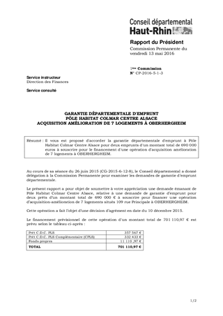 GARANTIE DÉPARTEMENTALE D'EMPRUNTPÔLE HABITAT COLMAR CENTRE ALSACEACQUISITION AMÉLIORATION DE 7 LOGEMENTS À OBERHERGHEIM