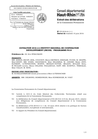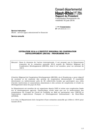 Dans le domaine de l'action internationale, il est proposé que le Département s'acquitte de la cotisation annuelle 2016 auprès de l’Institut Régional de Coopération Développement (IRCOD), dont il est membre, pour un montant de 100 €.