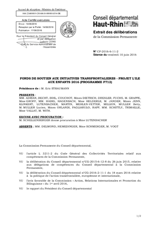 FONDS DE SOUTIEN AUX INITIATIVES TRANSFRONTALIERES - PROJET L'ILE AUX ENFANTS 2016 (PROGRAMME F712)