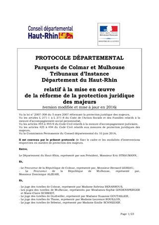 SIGNATURE DU PROTOCOLE DEPARTEMENTAL CONCERNANT LA PROTECTION JURIDIQUE DES MAJEURS AVEC LA JUSTICE (VERSION MODIFIÉE)