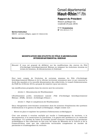 MODIFICATION DES STATUTS DU PÔLE D'ARCHEOLOGIE INTERDEPARTEMENTAL RHENAN