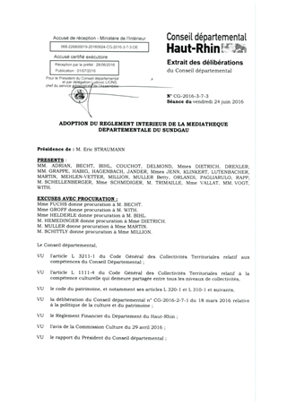 ADOPTION DU REGLEMENT INTERIEUR DE LA MEDIATHEQUE DEPARTEMENTALE DU SUNDGAU