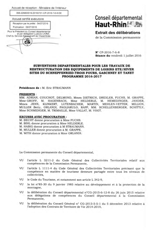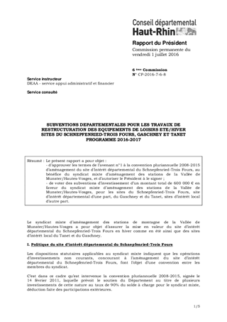 SUBVENTIONS DEPARTEMENTALES POUR LES TRAVAUX DE RESTRUCTURATION DES EQUIPEMENTS DE LOISIRS ETE/HIVERSITES DU SCHNEPFENRIED-TROIS FOURS, GASCHNEY ET TANET PROGRAMME 2016-2017