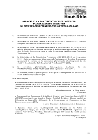 Le présent rapport a pour objet : - d’approuver les termes de l’avenant n°1 à la convention pluriannuelle 2008-2015 d’aménagement du site d’intérêt départemental du Schnepfenried-Trois Fours, au bénéfice du syndicat mixte d’aménagement des stations de la Vallée de Munster/Hautes-Vosges, et d’autoriser le Président à le signer ; - de voter des subventions d’investissement d’un montant total de 600 000 € en faveur du syndicat mixte d’aménagement des stations de la Vallée de Munster/Hautes-Vosges, pour les sites du Schnepfenried-Trois Fours, site d’intérêt départemental d’une part, du Gaschney et du Tanet, sites d’intérêt local d’autre part.