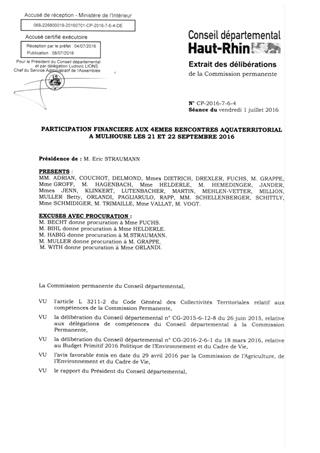 PARTICIPATION FINANCIERE AUX 4EMES RENCONTRES AQUATERRITORIAL A MULHOUSE LES 21 ET 22 SEPTEMBRE 2016
