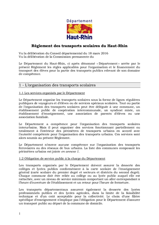 ACTUALISATION DU REGLEMENT DEPARTEMENTAL DES TRANSPORTS SCOLAIRES