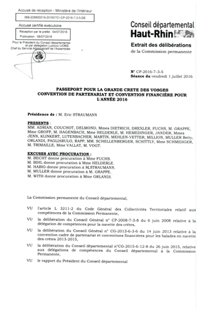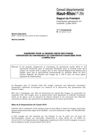 PASSEPORT POUR LA GRANDE CRETE DES VOSGESCONVENTION DE PARTENARIAT ET CONVENTION FINANCIÈRE POUR L'ANNÉE 2016