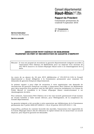 ASSOCIATION PETIT CHÂTEAU DE BEBLENHEIMTRANSFERT DE PRÊT ET RECONDUCTION DE GARANTIE D'EMPRUNT