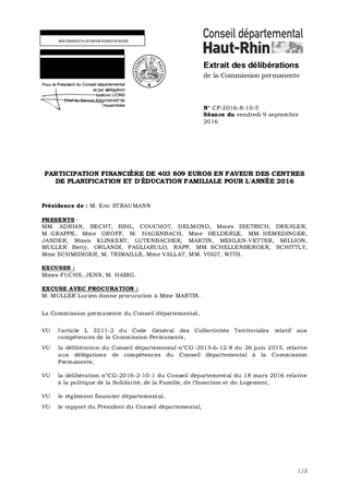 PARTICIPATION FINANCIÈRE DE 403 809 EUROS EN FAVEUR DES CENTRES DE PLANIFICATION ET D'ÉDUCATION FAMILIALE POUR L'ANNÉE 2016