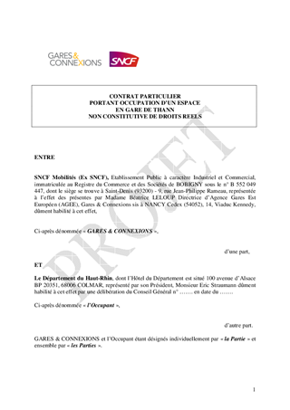 Il vous est proposé d’autoriser la location auprès de la SNCF des locaux occupés par le pôle gérontologique de THANN, et d’approuver la convention à conclure à cet effet moyennant une redevance annuelle de 7588,80 €, charges locatives en sus.