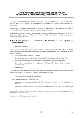 AVIS SUR LE PROJET DE SCHEMA DE COHERENCE TERRITORIALE ARRETE DU SYNDICAT MIXTE POUR LE SCOT COLMAR - RHIN - VOSGES