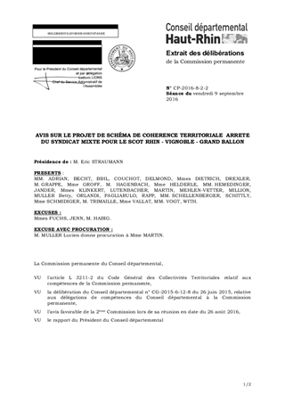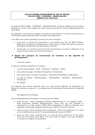 AVIS SUR LE PROJET DE SCHÉMA DE COHERENCE TERRITORIALE ARRETE DU SYNDICAT MIXTE POUR LE SCOT RHIN - VIGNOBLE - GRAND BALLON