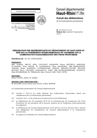 DÉSIGNATION DES REPRÉSENTANTS DU DÉPARTEMENT DU HAUT-RHIN AU SEIN DE LA CONFÉRENCE INTERCOMMUNALE DU LOGEMENT DE LA COMMUNAUTÉ D'AGGLOMÉRATION DES TROIS FRONTIÈRES