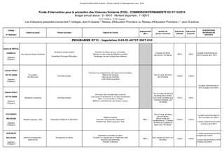 FONDS D'INTERVENTION POUR LA PREVENTION DES VIOLENCES SCOLAIRESNEUF PROJETS D'ACTION PROPOSÉS PAR SEPT COLLÈGES