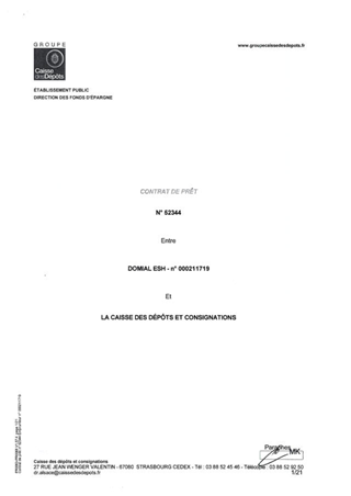 Il vous est proposé d'accorder la garantie départementale d'emprunt à DOMIAL ESH à hauteur de 100 % pour deux prêts d’un montant total de 1 093 940 € à souscrire auprès de la Caisse des dépôts et consignations pour le financement d'une opération d’acquisition en VEFA de 15 logements situés Route Saint Jacques à THANN.