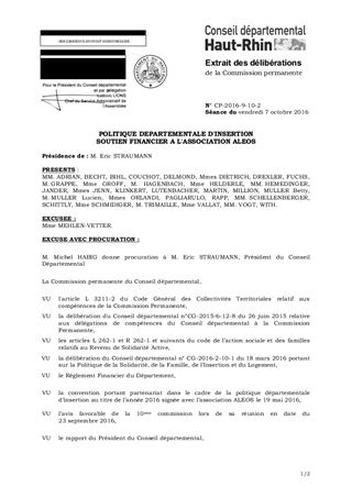POLITIQUE DEPARTEMENTALE D'INSERTIONSOUTIEN FINANCIER A L'ASSOCIATION ALEOS