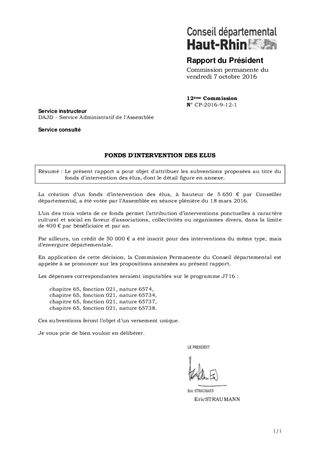 Le présent rapport a pour objet d'attribuer les subventions proposées au titre du fonds d'intervention des élus, dont le détail figure en annexe.