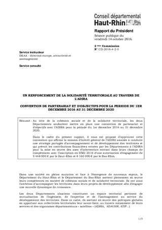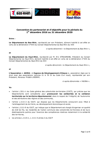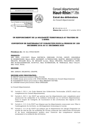 UN RENFORCEMENT DE LA SOLIDARITÉ TERRITORIALE AU TRAVERS DE L'ADIRACONVENTION DE PARTENARIAT ET D'OBJECTIFS POUR LA PERIODE DU 1ER DECEMBRE 2016 AU 31 DECEMBRE 2020