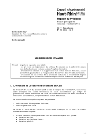 Le présent rapport a pour objet : - de procéder au réajustement du tableau des emplois de la collectivité compte tenu de la révision de certains cadres d’emplois statutaires ; - d’autoriser la création et la suppression d’un certain nombre d’emplois, afin de permettre la poursuite de la réorganisation des services de notre administration ; - d’autoriser, en cas d’échec de la procédure statutaire, le recrutement d’agents contractuels pour un certain nombre d’emplois inscrits au tableau des emplois.