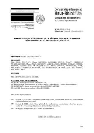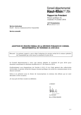 ADOPTION DU PROCÈS-VERBAL DE LA RÉUNION PUBLIQUE DU CONSEIL DÉPARTEMENTAL DU VENDREDI 24 JUIN 2016