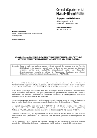 Dans le cadre du présent rapport, il est proposé de prendre acte de l’activité d’ALSABAIL et de répartir à parité, pour la durée de leur mandat, les jetons de présence versés par ALSABAIL annuellement entre les Conseillers départementaux amenés à siéger à l’Assemblée Générale, au Conseil d’Administration et au Comité des Engagements d’ALSABAIL.
