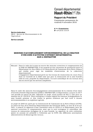 MESURES D'ACCOMPAGNEMENT ENVIRONNEMENTAL DE LA CREATION D'UNE ZONE D'ACTIVITES D'INTERET DEPARTEMENTAL ZAID A DIEFMATTEN