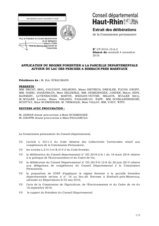 APPLICATION DU REGIME FORESTIER A LA PARCELLE DEPARTEMENTALE AUTOUR DU LAC DES PERCHES A RIMBACH PRES MASEVAUX