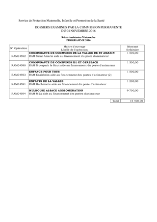 Il est proposé la mise en paiement des subventions concernant le financement des postes d'animateurs de 9 Relais Assistants Maternels pour un montant total de 15 400 € réparti entre les 5 organismes énumérés dans la liste jointe à ce rapport.