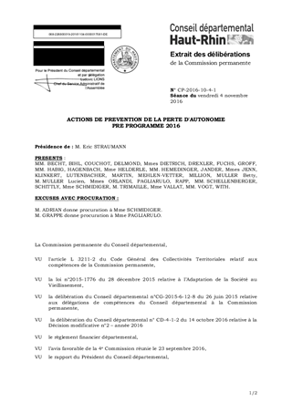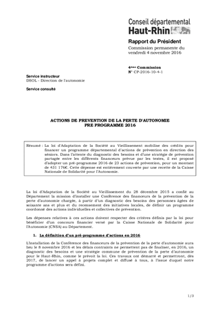 ACTIONS DE PREVENTION DE LA PERTE D'AUTONOMIE PRE PROGRAMME 2016