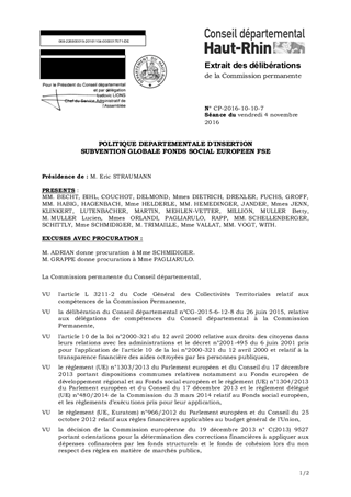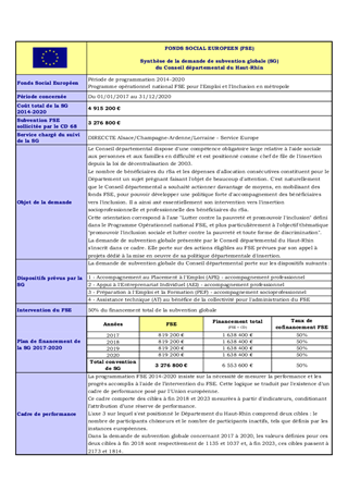 POLITIQUE DEPARTEMENTALE D'INSERTION SUBVENTION GLOBALE FONDS SOCIAL EUROPEEN FSE