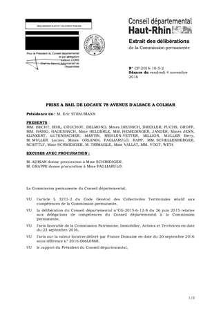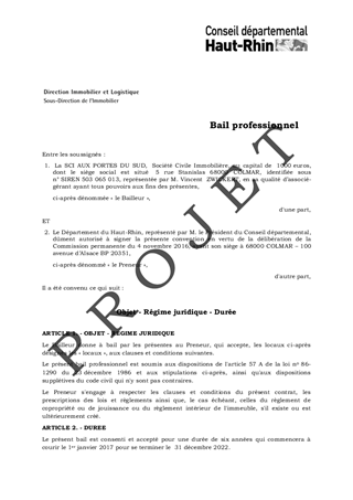 PRISE A BAIL DE LOCAUX 78 AVENUE D'ALSACE A COLMAR